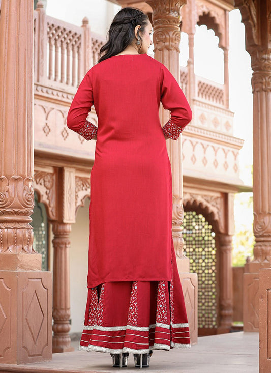 Palazzo Salwar Suit Rayon Red Embroidered