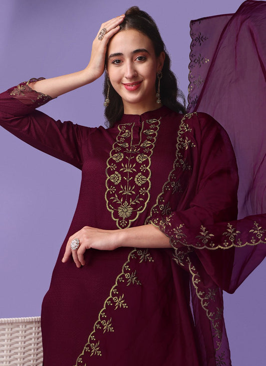 Salwar Suit Rayon Viscose Wine Embroidered