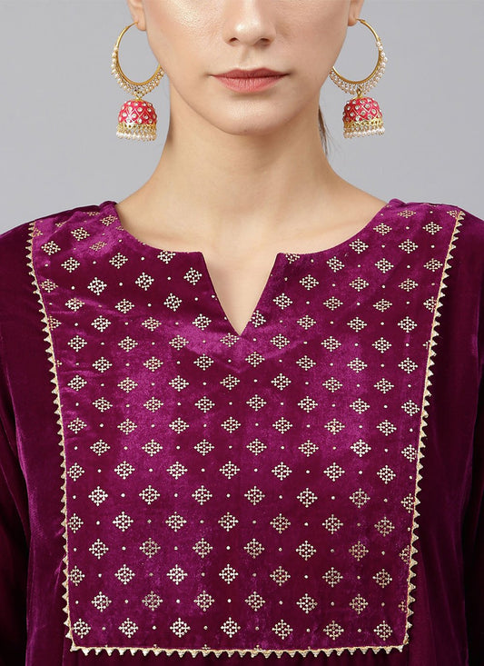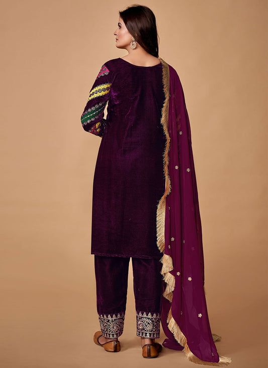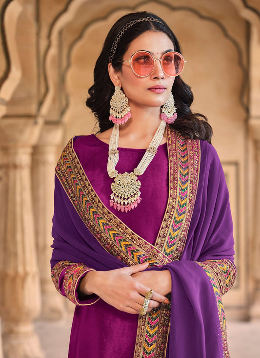 Palazzo Salwar Suit Velvet Purple Embroidered