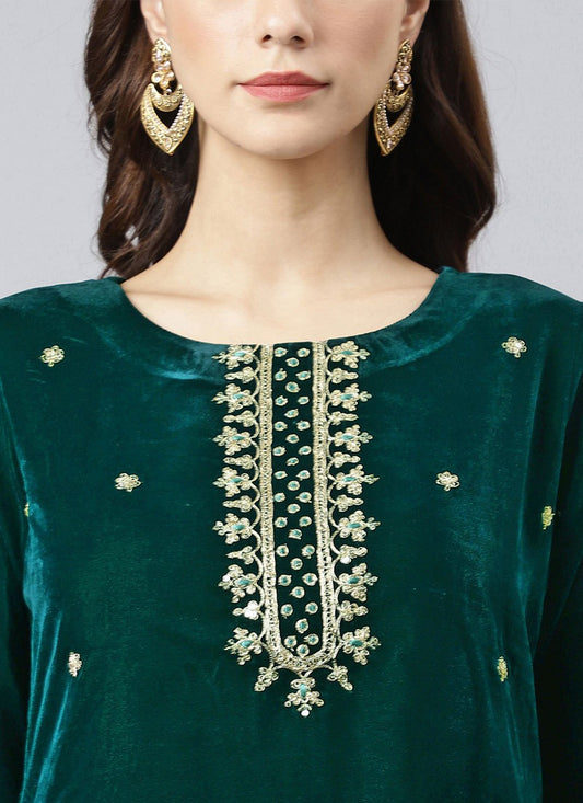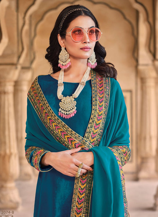 Palazzo Salwar Suit Velvet Rama Embroidered