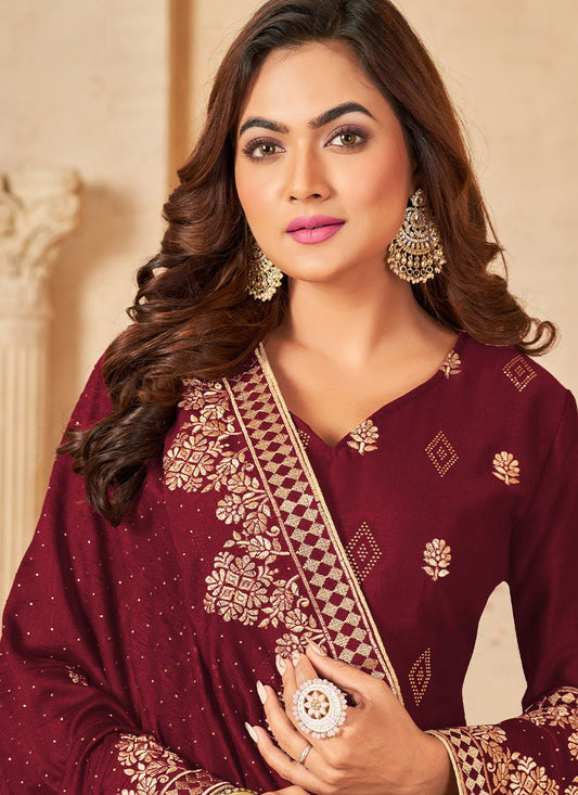 Salwar Suit Velvet Maroon Embroidered Salwar