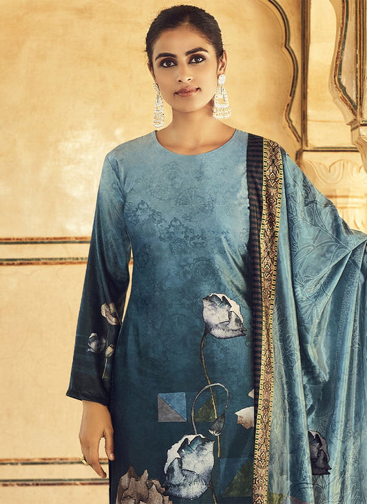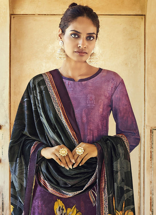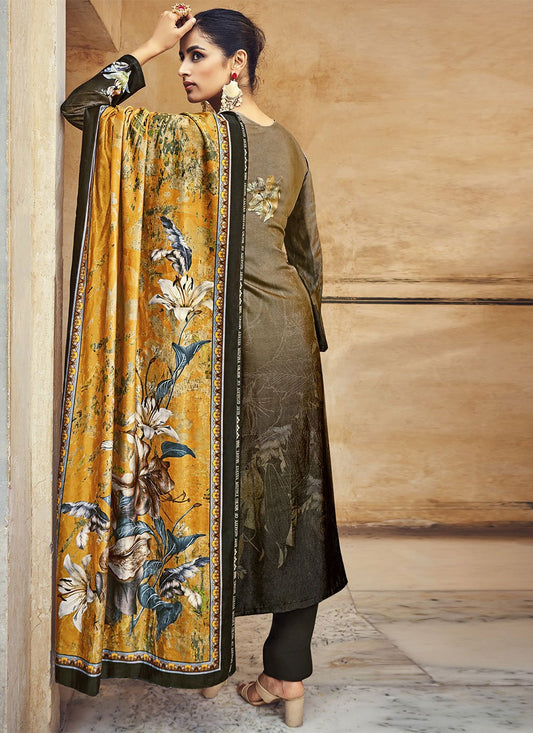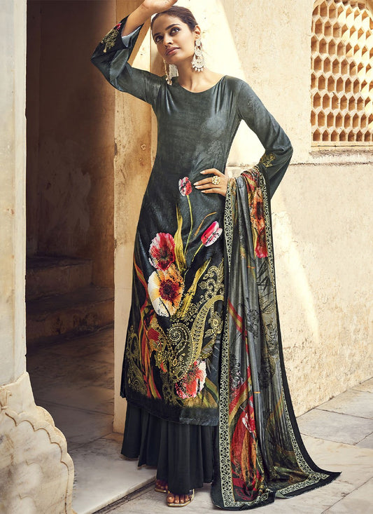 Palazzo Salwar Suit Velvet Grey Embroidered