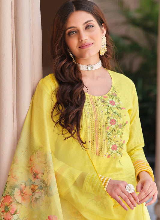Palazzo Salwar Suit Cotton Yellow Embroidered
