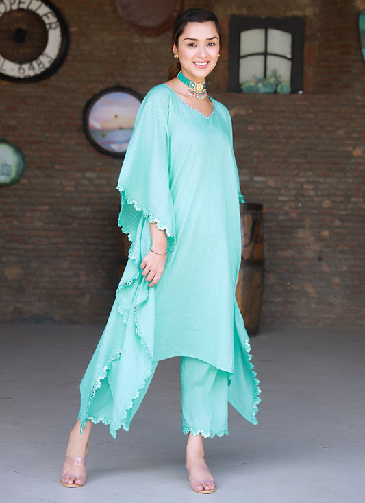Salwar Suit Silk Turquoise Embroidered Salwar