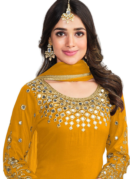 Punjabi Salwar Suit Silk Mustard Embroidered