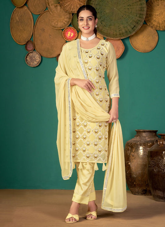 Salwar Suit Georgette Yellow Embroidered Salwar