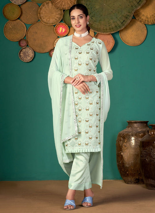 Salwar Suit Faux Georgette Green Embroidered