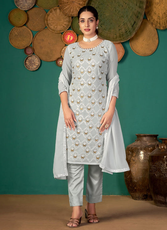 Salwar Suit Faux Georgette Grey Embroidered