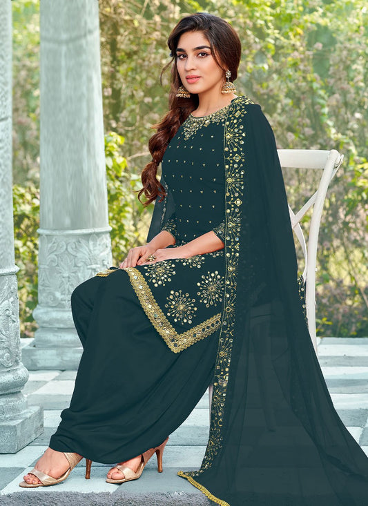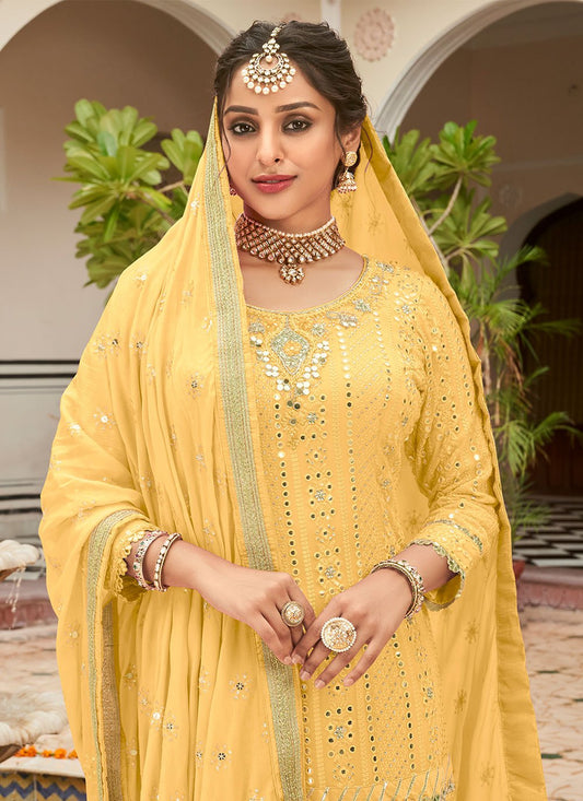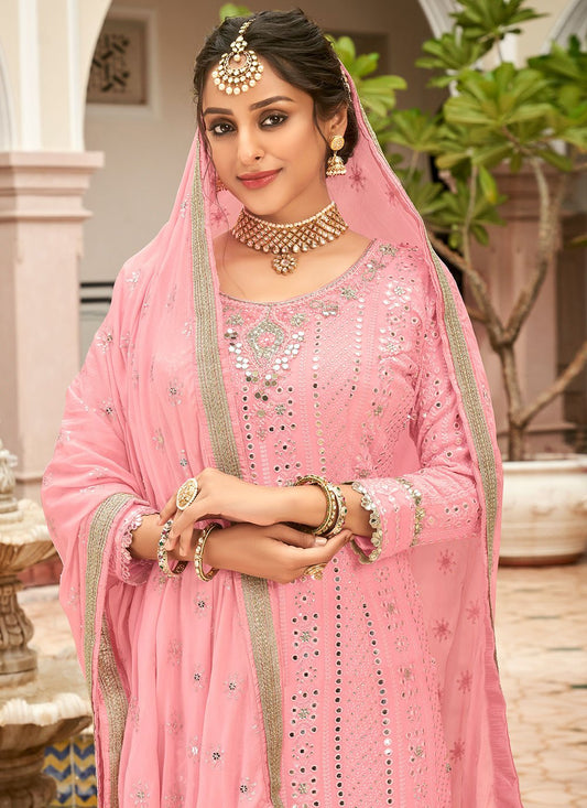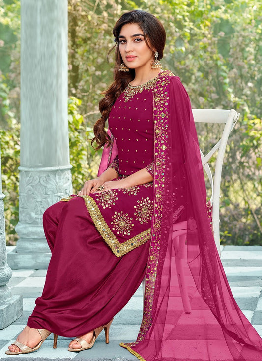Palazzo Salwar Suit Georgette Mauve Mirror