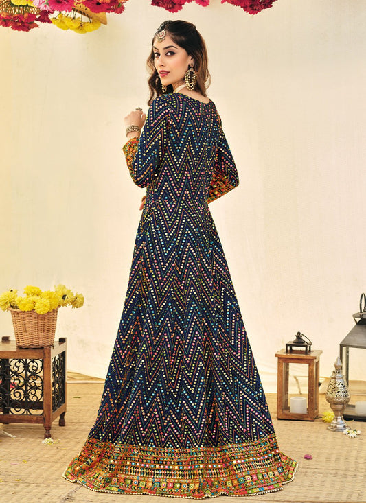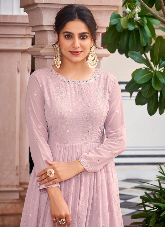 Anarkali Suit Georgette Purple Embroidered Salwar