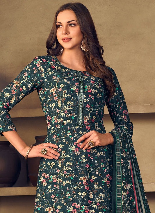 Punjabi Salwar Suit Muslin Blue Embroidered