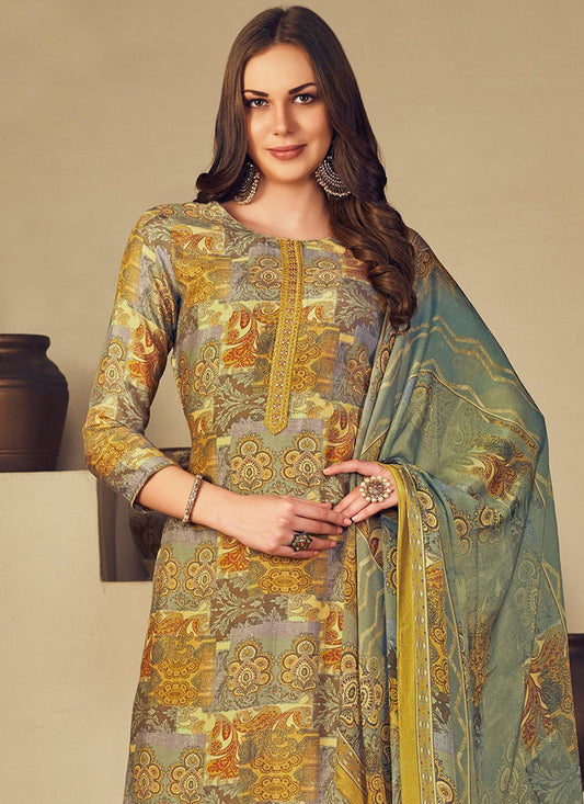 Salwar Suit Muslin Yellow Embroidered Salwar