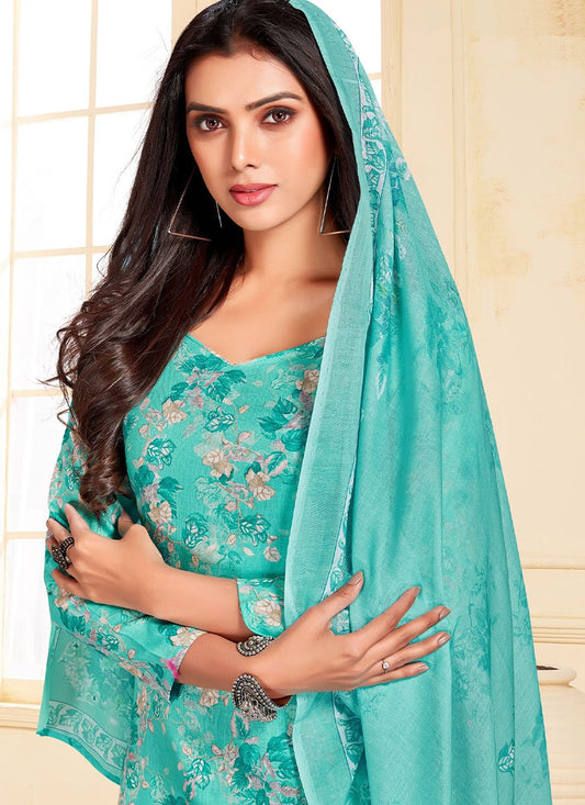 Salwar Suit Cotton Teal Print Salwar