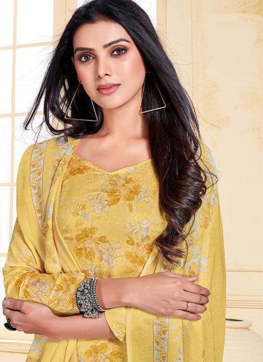 Trendy Suit Cotton Satin Yellow Print