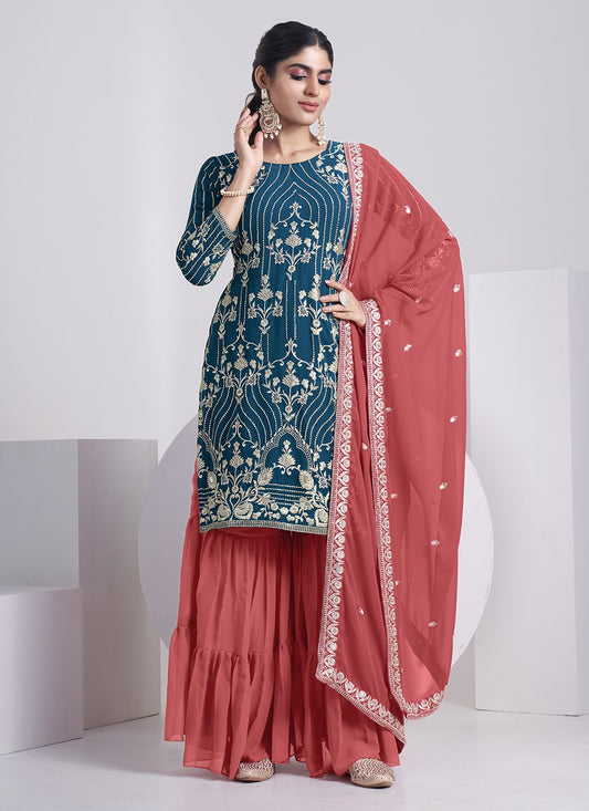 Anarkali Suit Georgette Pink Embroidered Salwar
