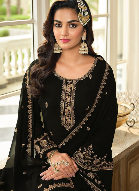 Salwar Suit Georgette Black Embroidered Salwar