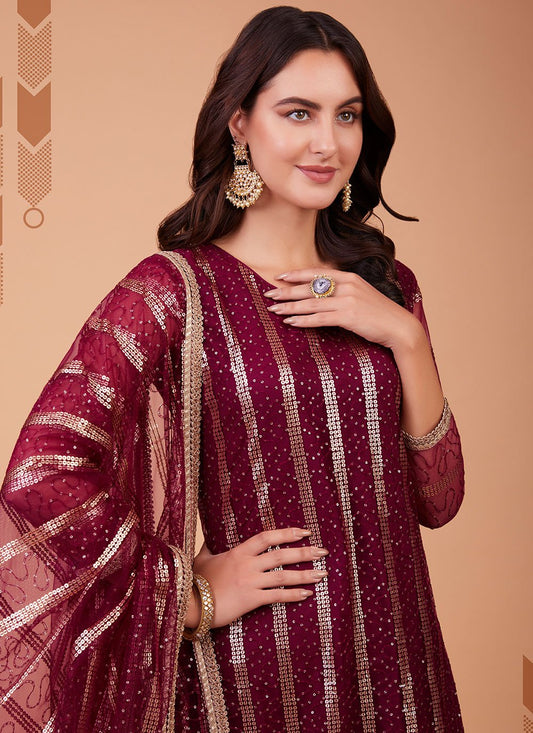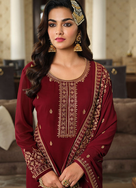 Pakistani Salwar Suit Georgette Maroon Embroidered