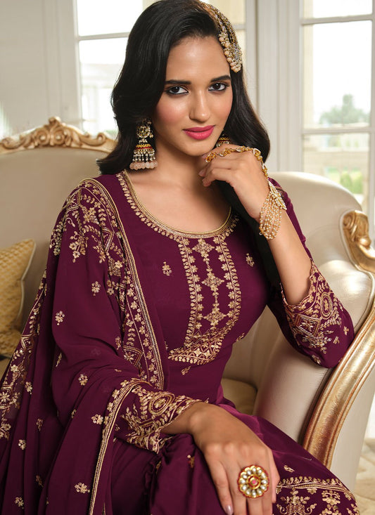 Salwar Suit Georgette Magenta Embroidered Salwar