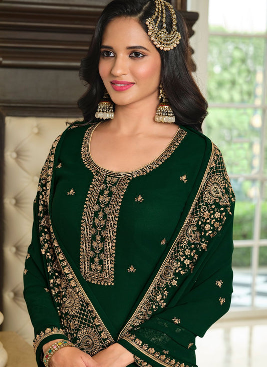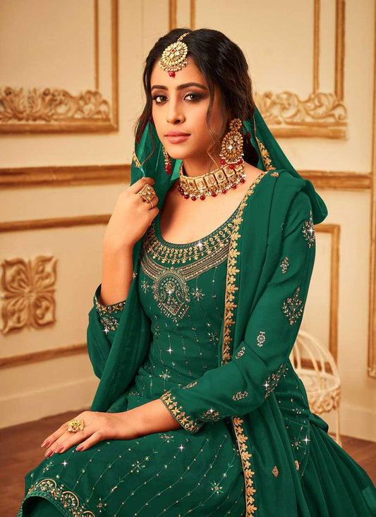 Pakistani Salwar Suit Georgette Green Embroidered