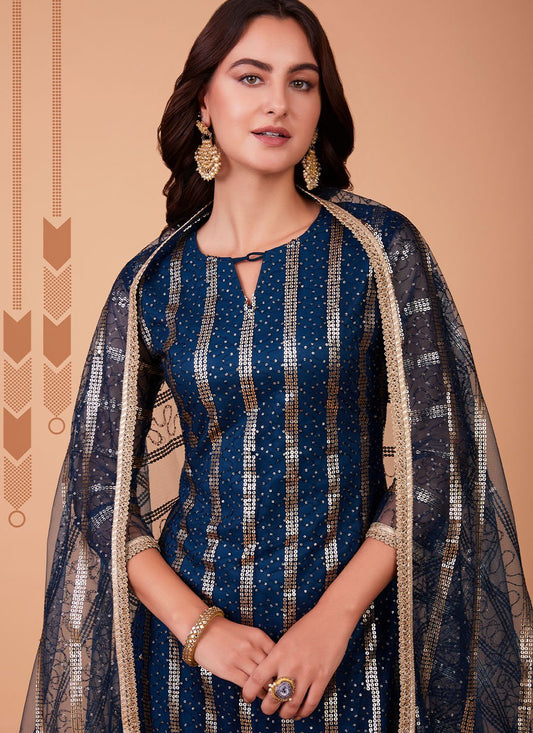 Trendy Suit Georgette Blue Embroidered Salwar
