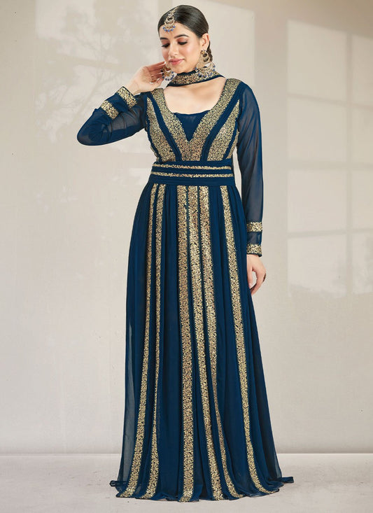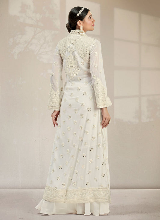 Palazzo Salwar Suit Georgette Purple Embroidered