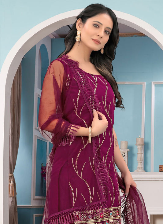 Salwar Suit Net Maroon Embroidered Salwar