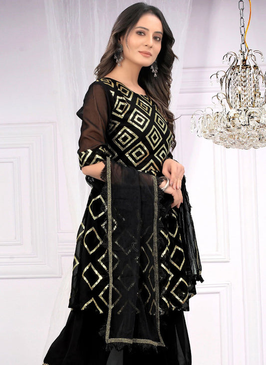 Palazzo Salwar Suit Faux Georgette Black
