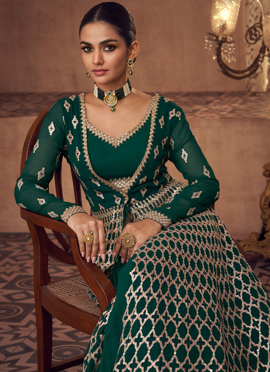 Salwar Suit Georgette Green Embroidered Salwar