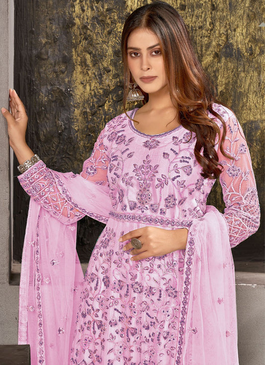 Salwar Suit Georgette Pink Embroidered Salwar