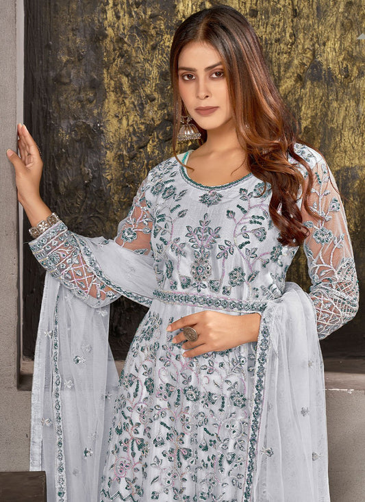 Salwar Suit Net Blue Embroidered Salwar