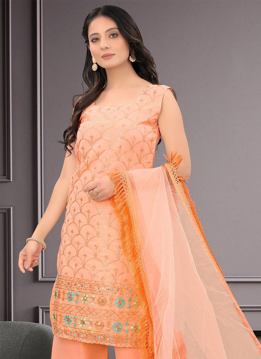 Salwar Suit Faux Georgette Peach Embroidered
