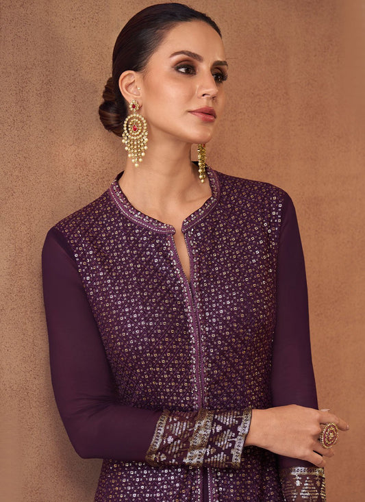 Palazzo Salwar Suit Faux Georgette Purple