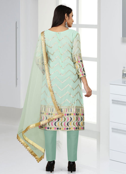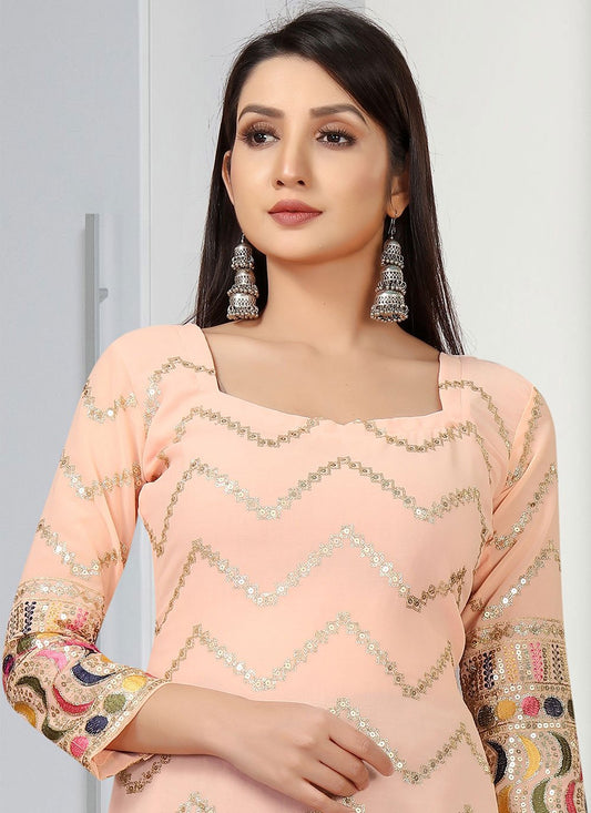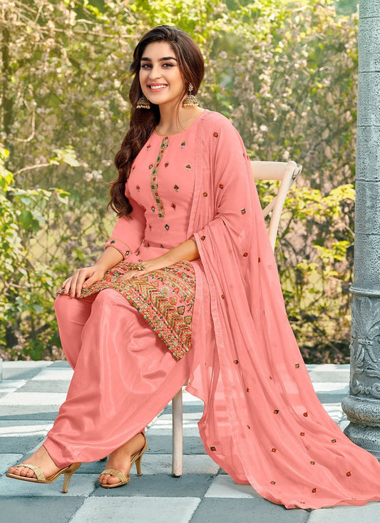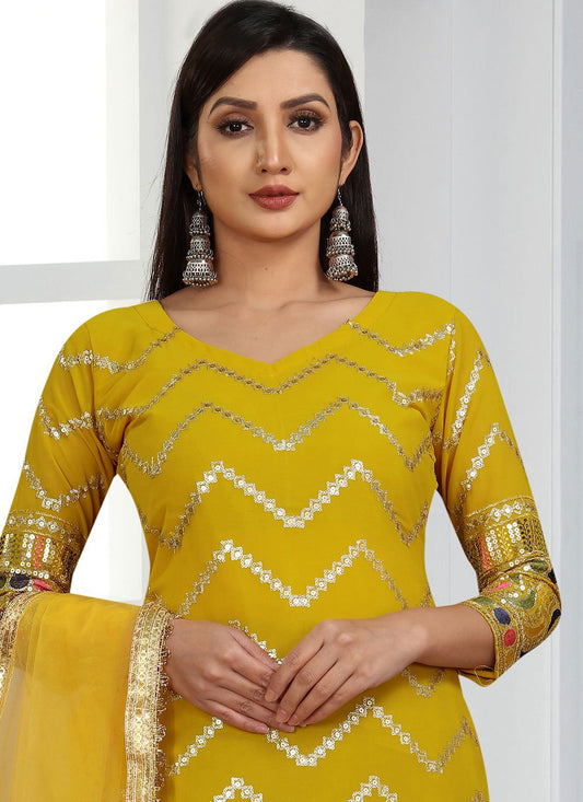 Salwar Suit Georgette Yellow Embroidered Salwar