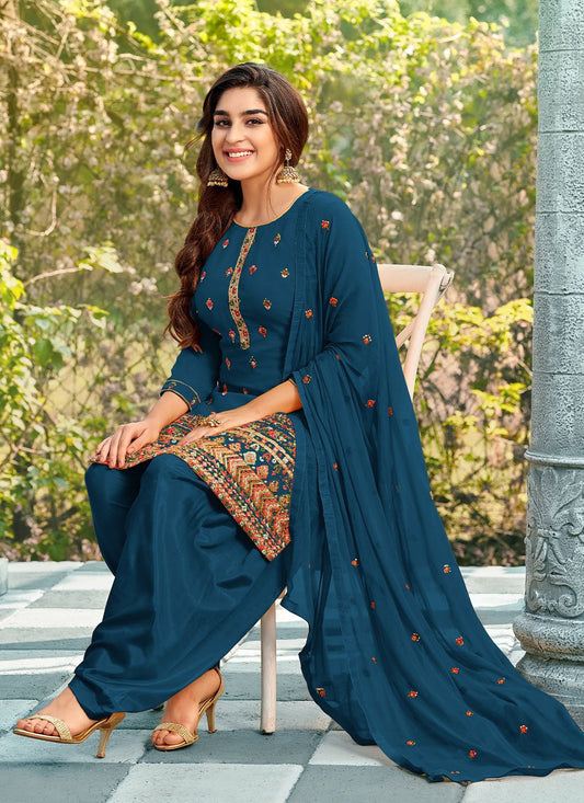 Salwar Suit Chinon Mustard Embroidered Salwar