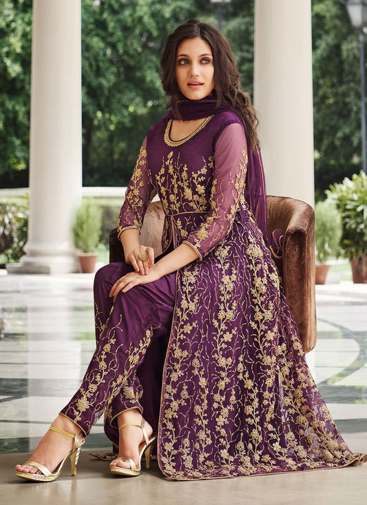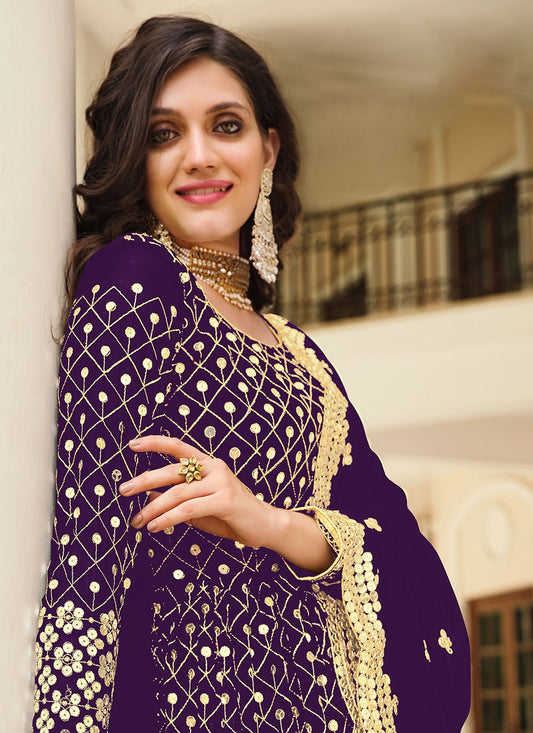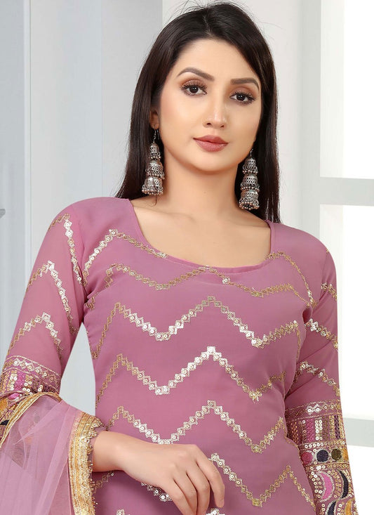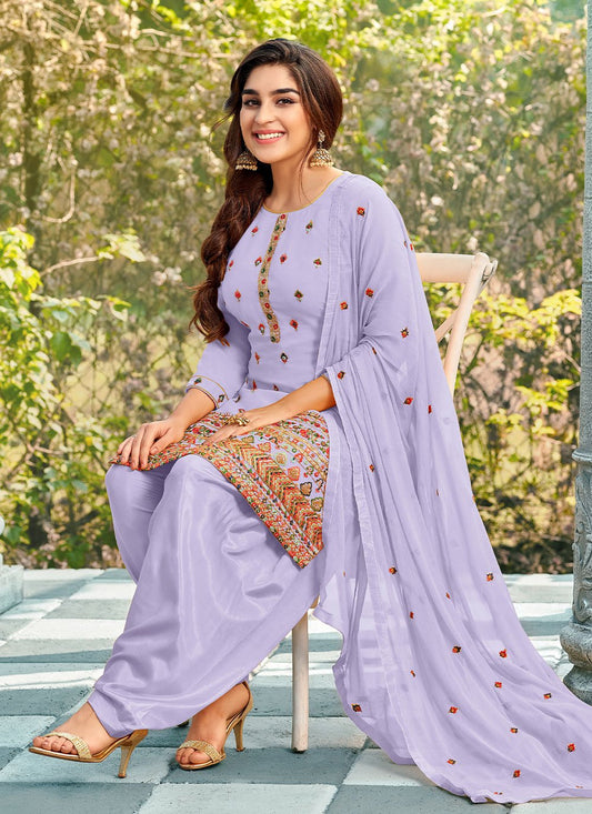 Punjabi Salwar Suit Georgette Lavender Embroidered