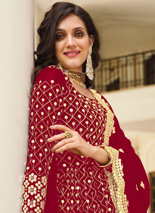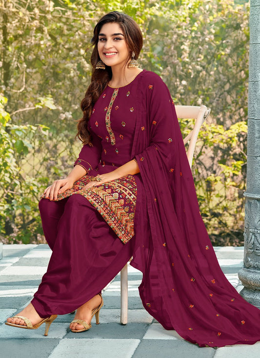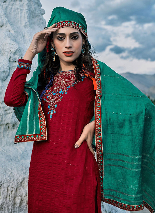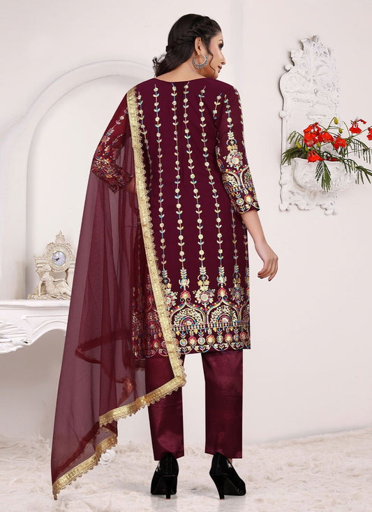 Salwar Suit Chinon Maroon Embroidered Salwar