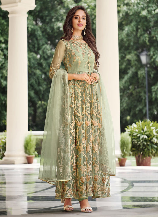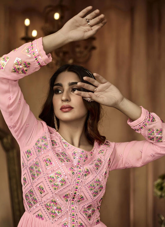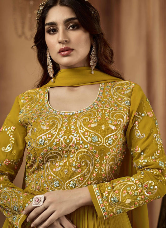 Anarkali Suit Georgette Mustard Embroidered Salwar