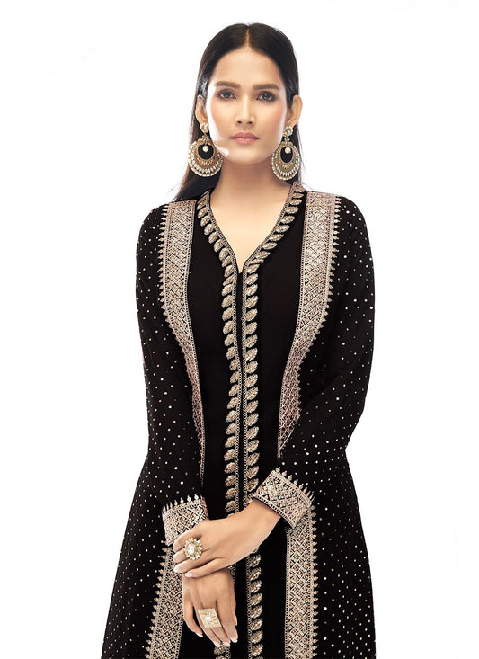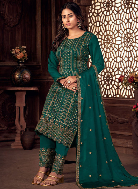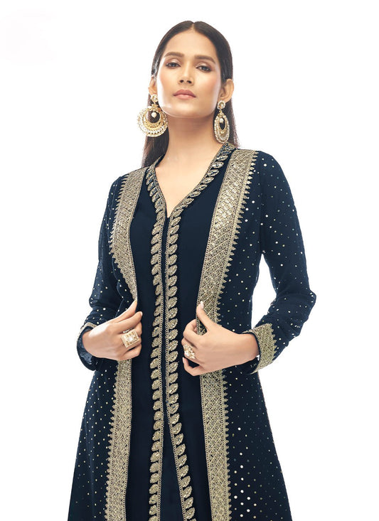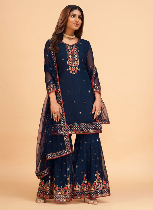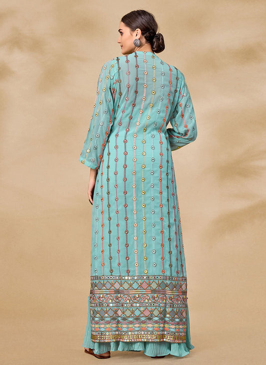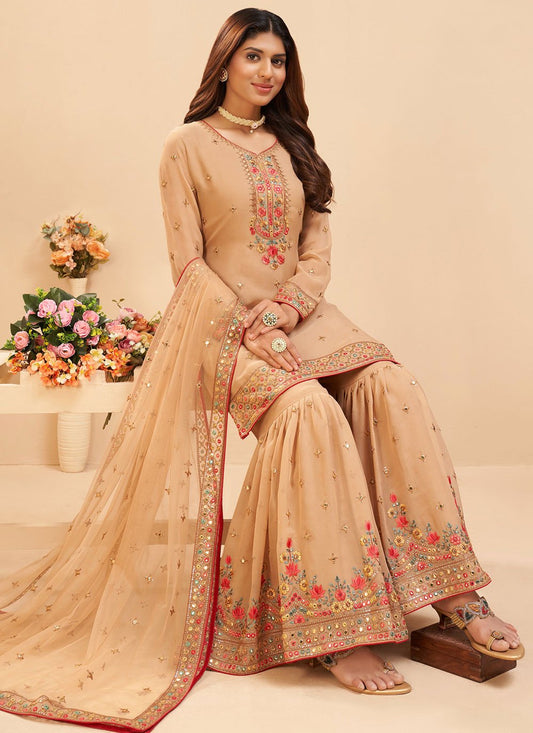Palazzo Salwar Suit Georgette Cream Embroidered