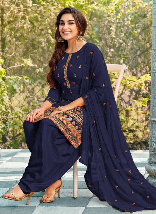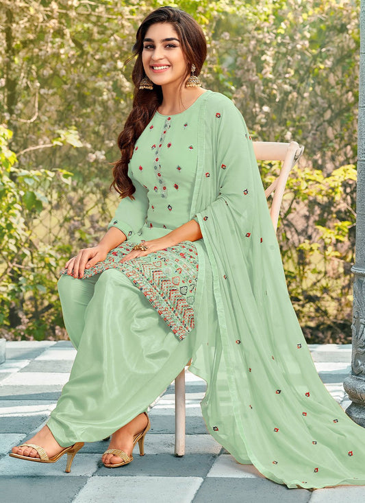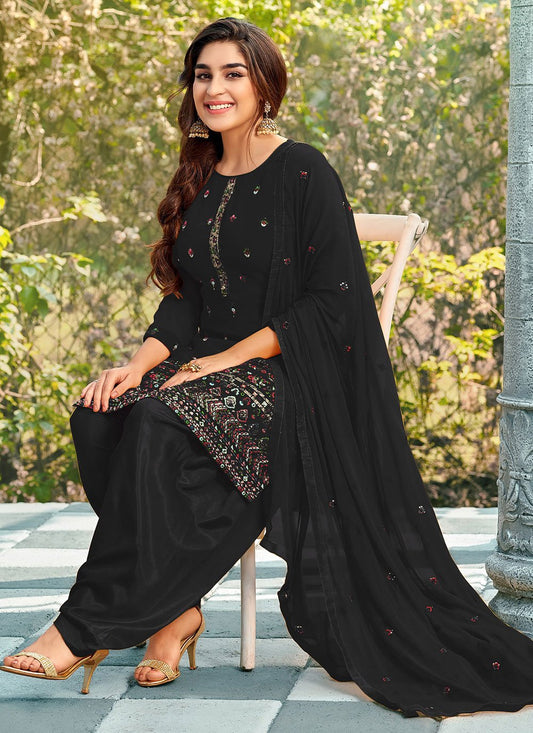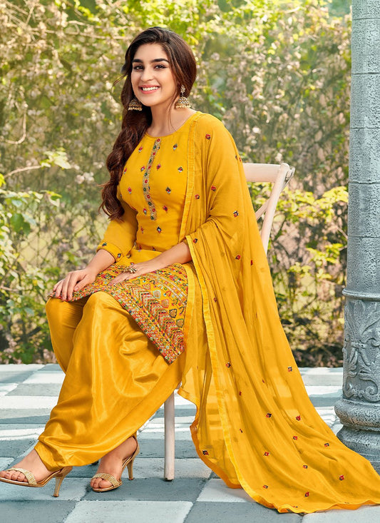 Patiala Suit Georgette Yellow Embroidered Salwar