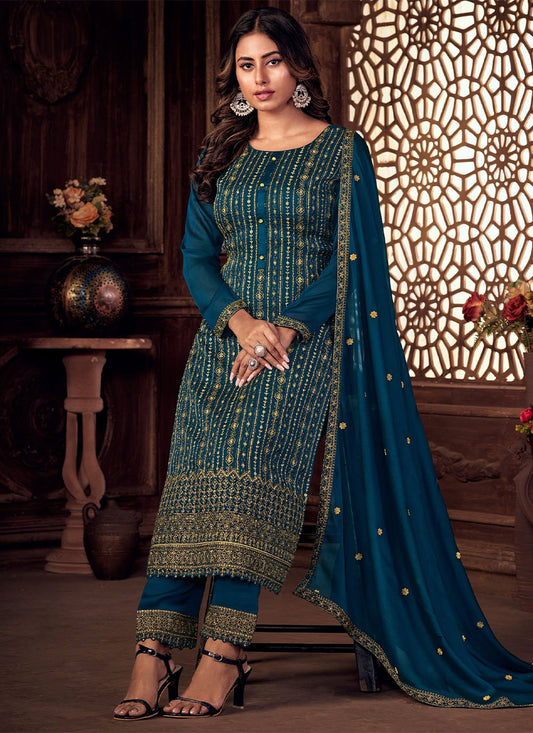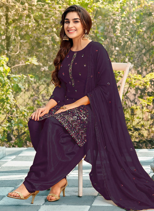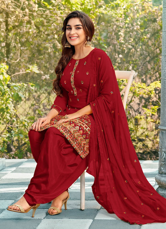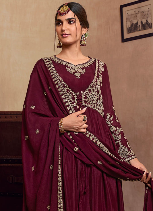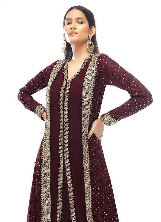 Salwar Suit Georgette Maroon Embroidered Salwar