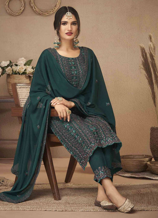 Salwar Suit Georgette Magenta Embroidered Salwar