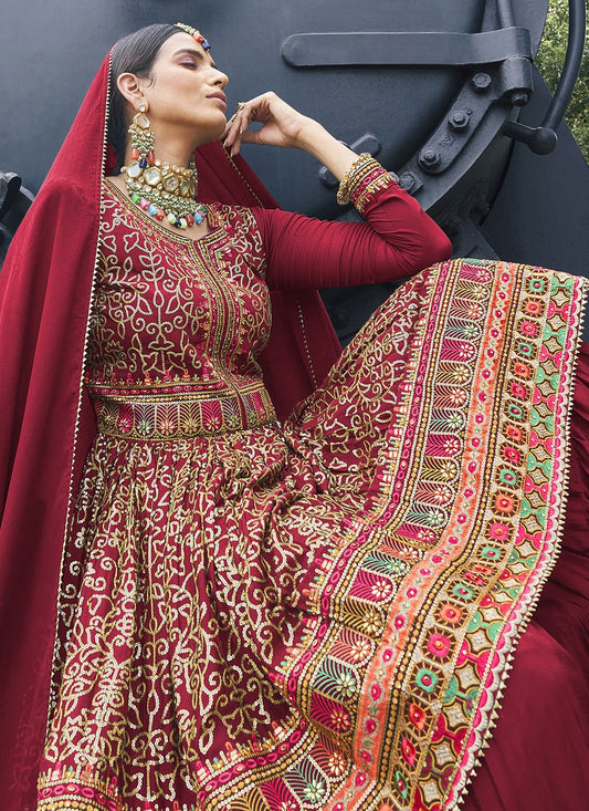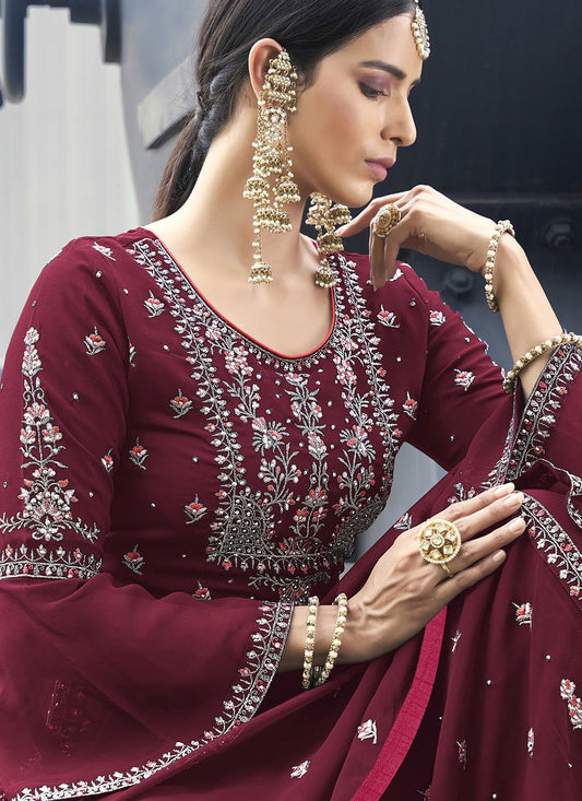 Trendy Suit Chinon Maroon Embroidered Salwar