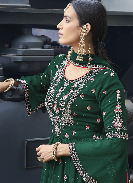 Palazzo Salwar Suit Chinon Teal Embroidered