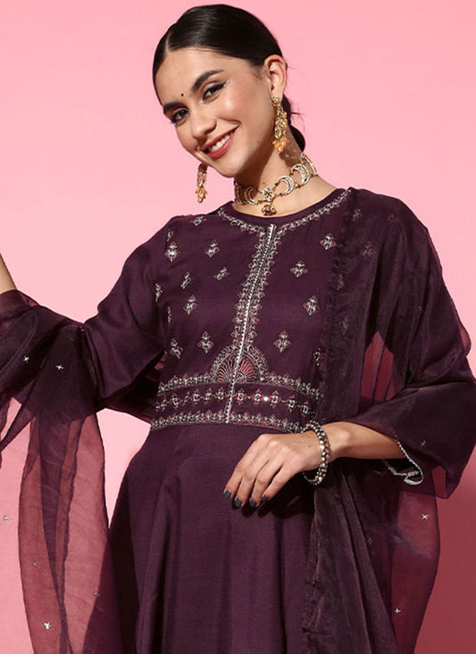 Salwar Suit Silk Purple Embroidered Salwar