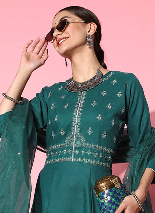 Salwar Suit Silk Green Embroidered Salwar
