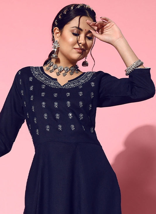 Anarkali Suit Silk Blue Embroidered Salwar