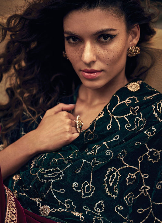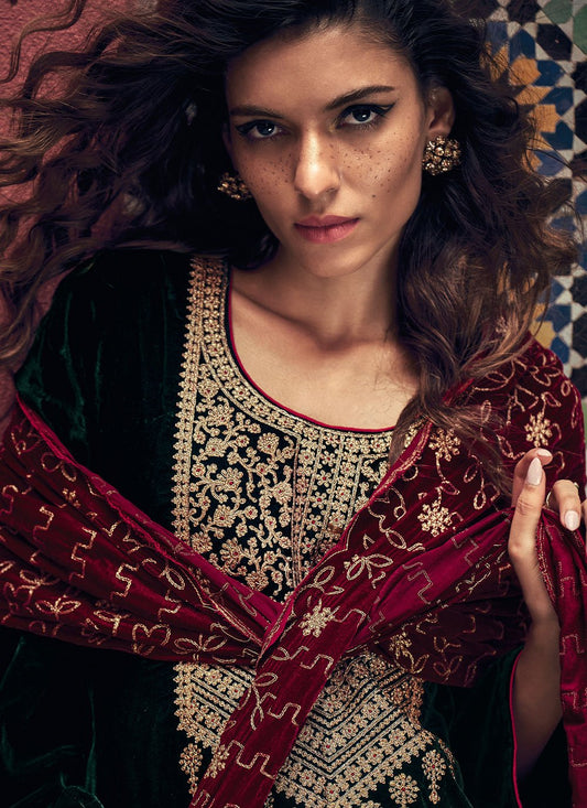 Salwar Suit Velvet Green Zari Salwar