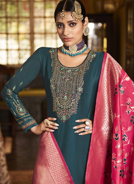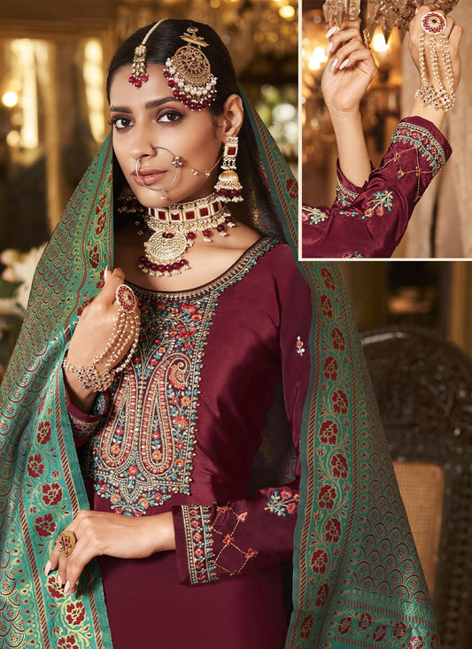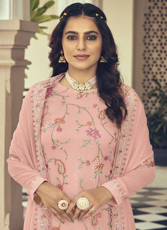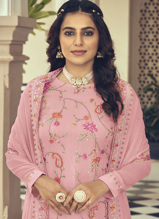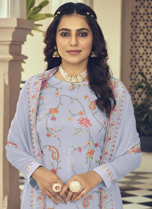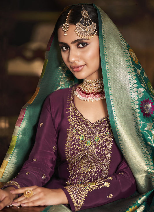 Anarkali Suit Georgette Purple Embroidered Salwar