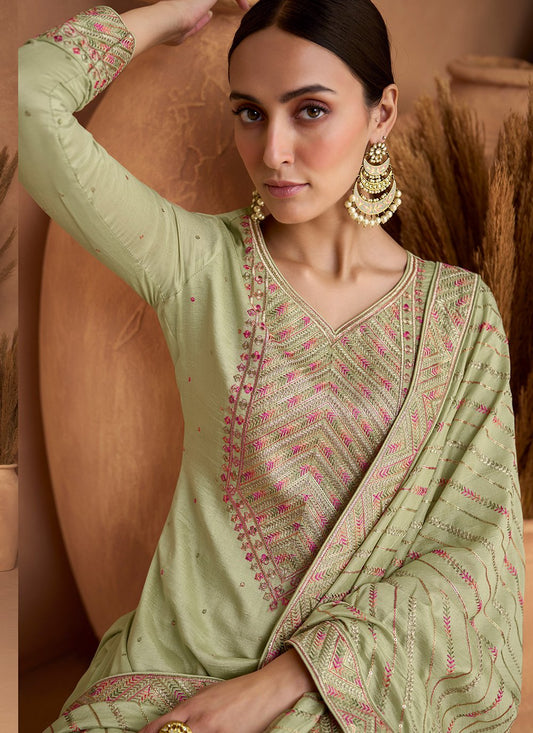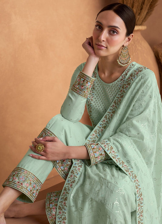Salwar Suit Chanderi Teal Embroidered Salwar
