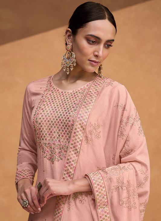 Salwar Suit Chanderi Peach Embroidered Salwar